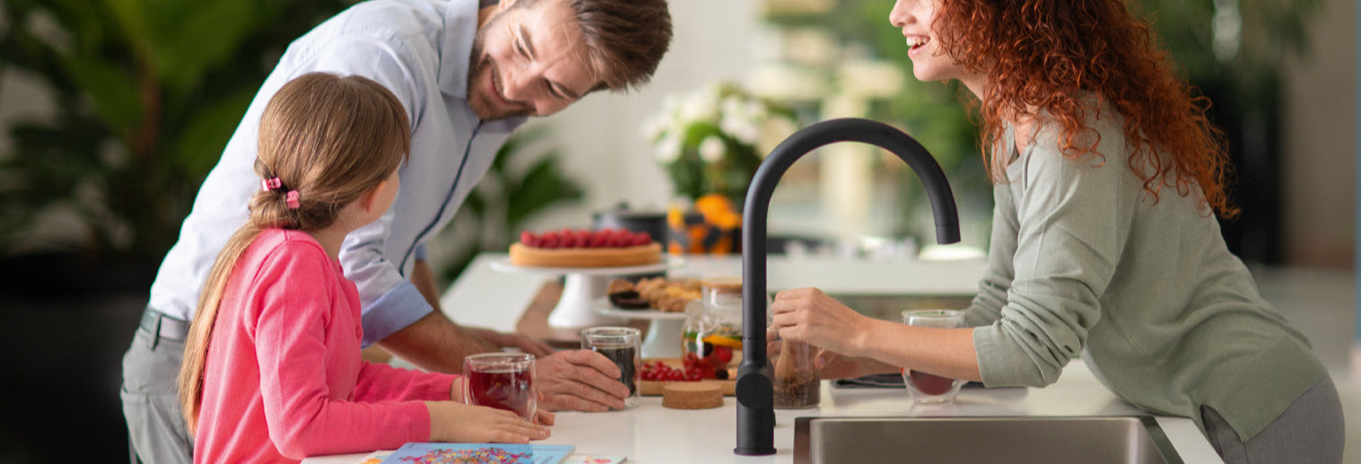 Gekoeld water komt altijd in combinatie met de kokendwaterfunctie. Zo schakel je veilig en snel tussen ijskoud en kokend heet water, binnen enkele seconden, rechtstreeks uit één kraan.